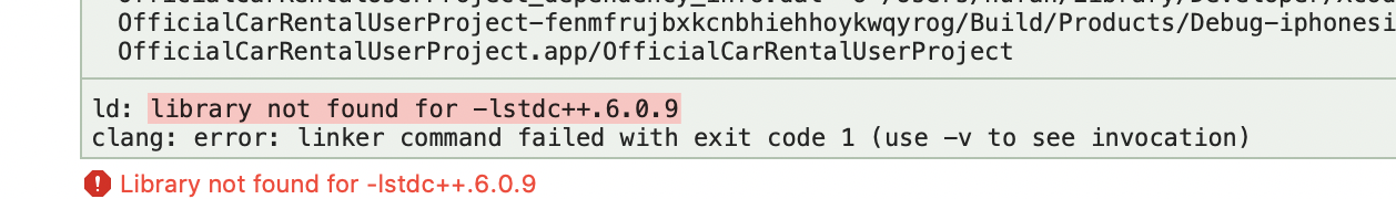 外包回来的项目,编译出现library not found for -lstdc++.6.0.9的问题,如下图: