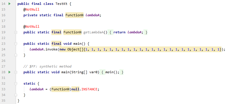 我们声明了带有 23 个参数的闭包,之后看下 Java 源码: