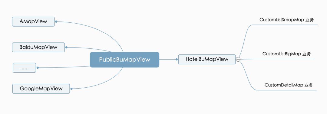 为了方便酒店三大模块的地图业务统一性,酒店安卓这边自定义一个HotelMapView继承自公共提供的CtripMapView 来共具体业务使用,并将 Marker 打点、地图围栏、生命周期处理等通过接口形式抽象进来。