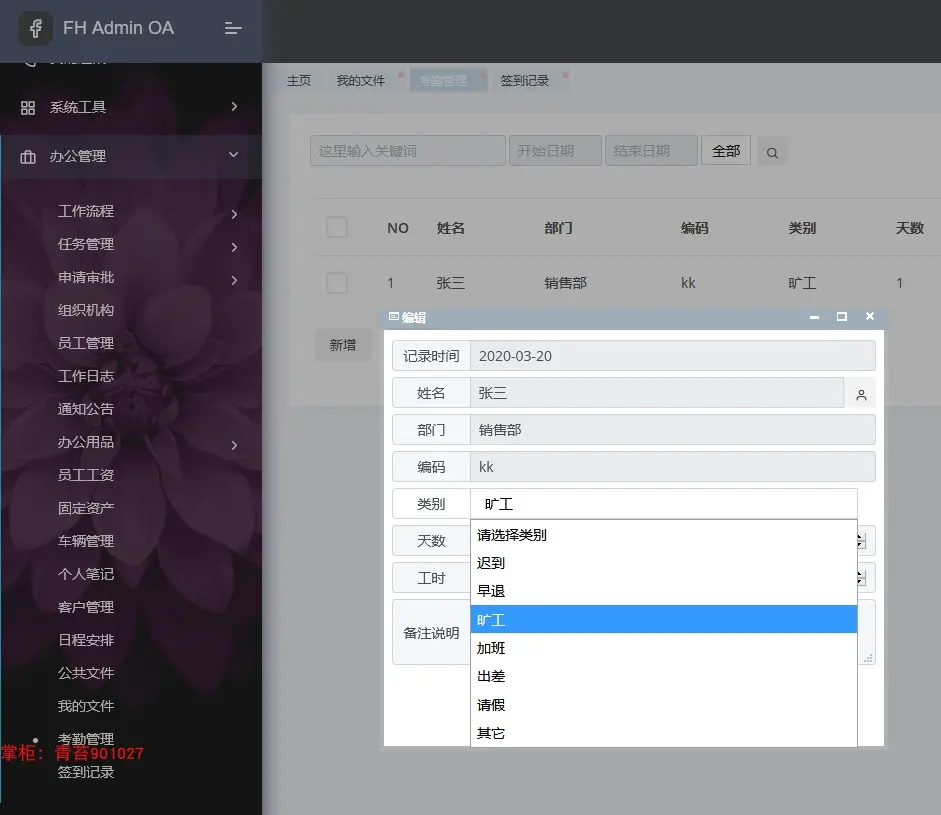24. 员工管理:和组织机构部门管理,可以绑定登录系统用户,授权数据权限