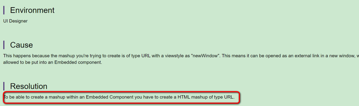 如果试图将url Mashup添加到embedded component里,会遇到下图的提示消息: