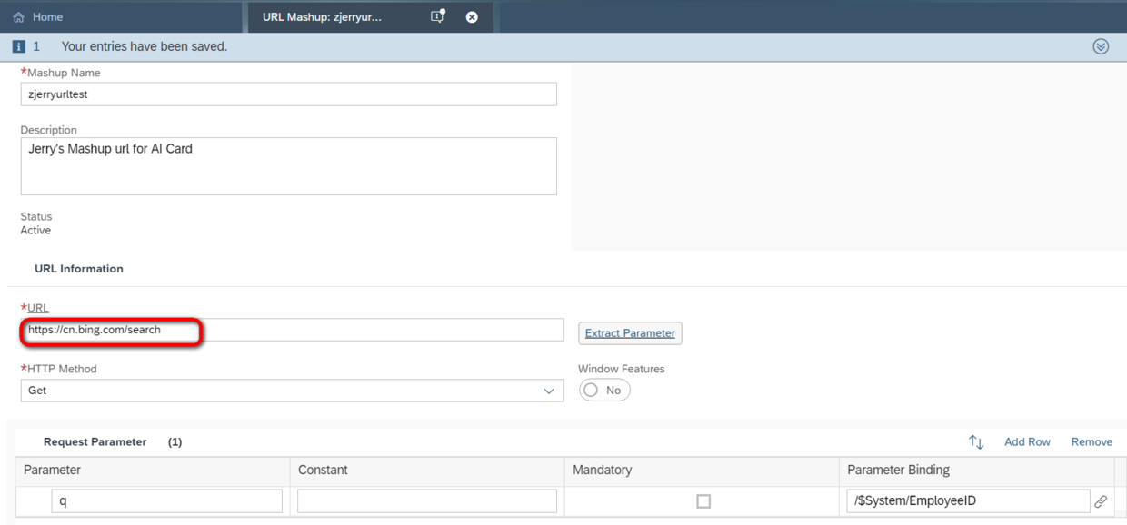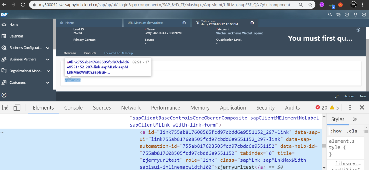 我在SalesLead TI页面的这个tab里配置了一个url Mashup,点击之后会跳转到bing的页面: