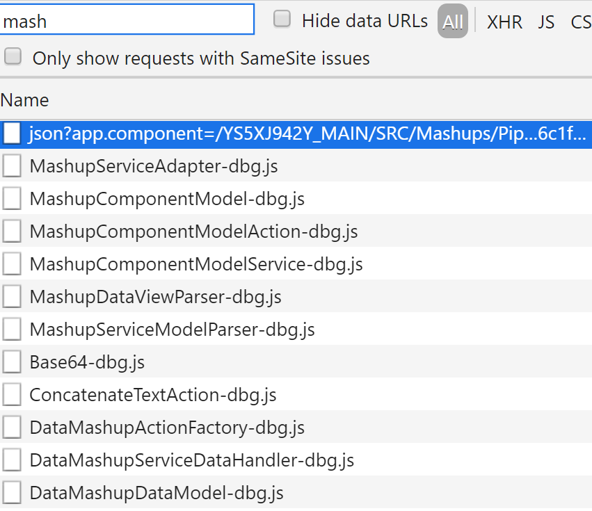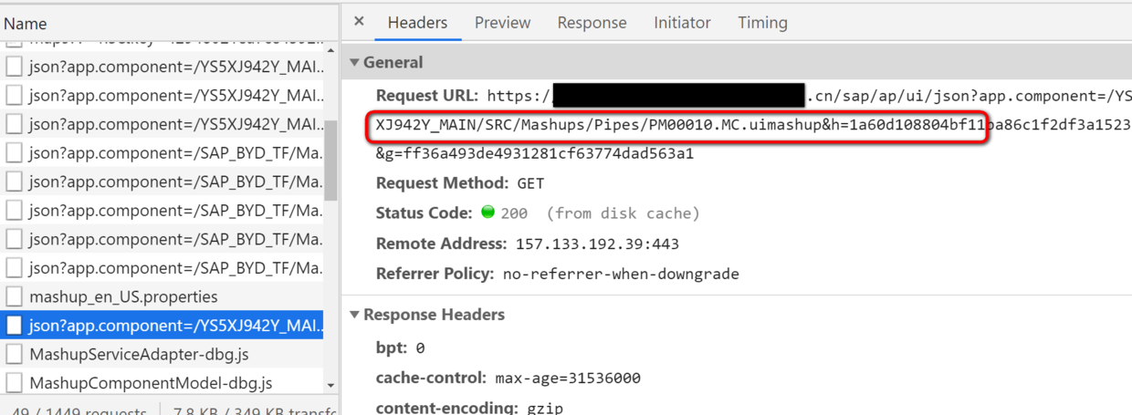 在Chrome开发者工具的network标签页里,看到一个HTTP请求去读取Mashup component: