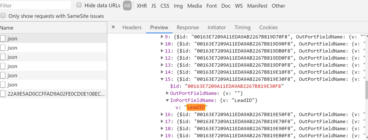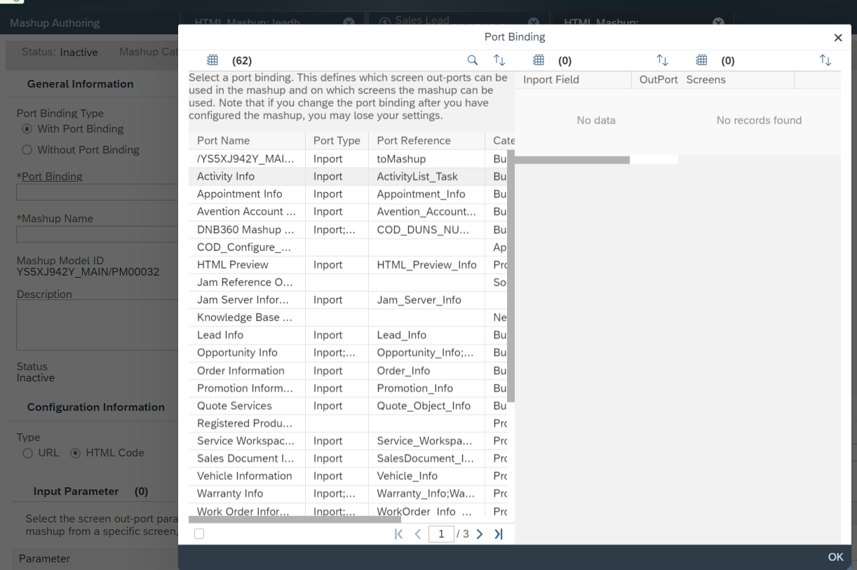 SAP C4C Mashup port bindingF4帮助对话框里的数据源 已注销 2020-03-20 72 阅读1分钟 我们在SAP Cloud for Customer上创建Mashup时,会选择port binding: 点了F4之后,看到的这些列表里的数据: 从Chrome开发者工具里能观察到这些数据是通过HTTP请求从后台返回的: 选中Lead_Info后:能看到Lead_Info这个inport提供的所有字段,这些字段又是另外一个HTTP调用取回的,其响应如下: 要获取更多Jerry的原创文章,请关注公众号"汪子熙":