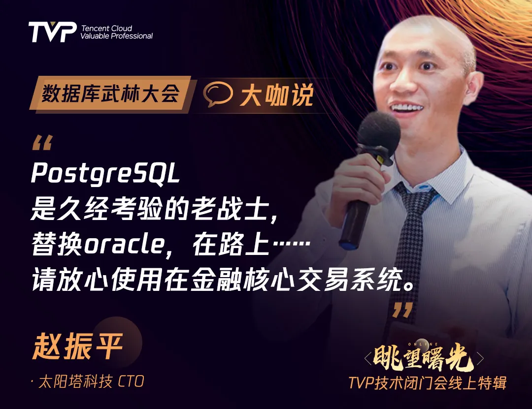 “PostgreSQL是最早的开源数据库!1986年就启动研发了,比包括MySQL在内的其他开源数据库都要早。它是一位久经考验的老战士,替换Oracle,在路上......请放心使用,尤其在金融核心交易系统。”