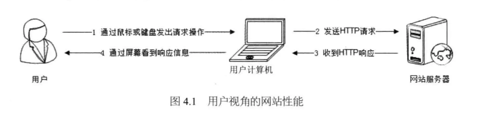 用户角度感受到的网站响应速度的快和慢。从用户在浏览器输入网址/打开应用,到整个页面呈现给用户的耗时。包含了用户端发送请求,服务端收到并执行请求,返回请求,客户端收到之后渲染的总时间。