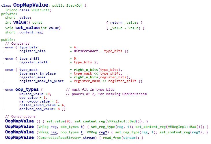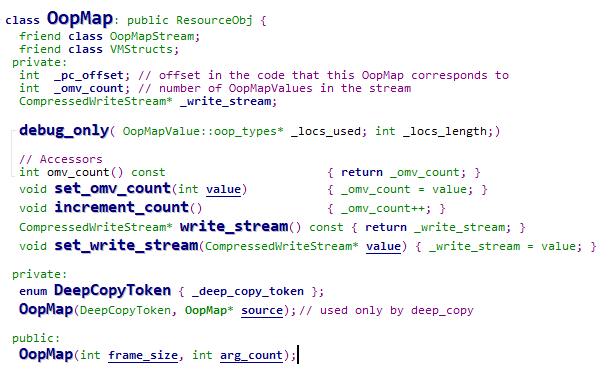 HotSpot源码中关于OopMap相关数据的创建代码分散在各个地方,可以通过在源码目录下搜索new OopMap关键字找到它们,通过初步的阅读,可以看到在函数的返回,异常的跳转,循环的跳转等地方都有它们的身影,在这些时刻,JVM将记录OopMap相关信息供后续GC时使用。