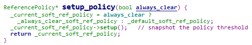 那到底setup_policy设置处理策略时always_clear是true还是false呢?因为这直接决定后续选择针对软引用的处理策略是 LRUCurrentHeapPolicy/LRUMaxHeapPolicy还是AlwaysClearPolicy。