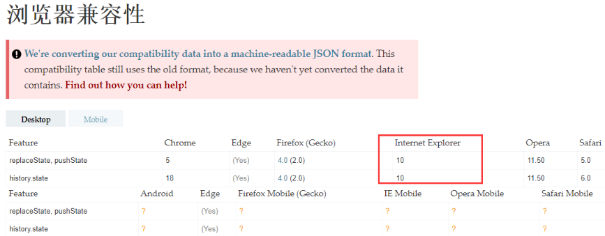 首先怀疑是 pushState 的兼容性问题,于是去看了一下兼容性
