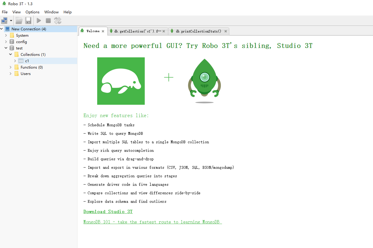 安装好了以后,在安装目录的根目录下(windows是安装盘目录),新建一个data/db,data/log 目录, db目录是启动mongdb服务是使用的,否则会出错,