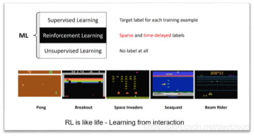 强化学习是区别于监督学习和无监督之间的第三类学习范式,可以理解为一种半监督学习。区别于深度学习,强化学习解决时序最优决策问题,目标是最大化连续多次决策的累计收益。而且强化学习没有正确的标签,只有从环境中获得反馈信号,而且通常是高度稀疏和延迟的,这也给强化学习带来了额外的挑战。