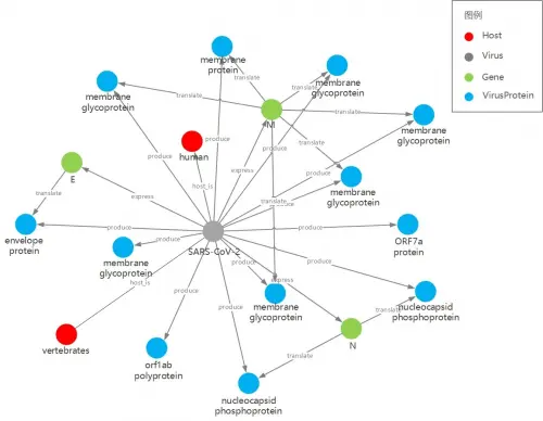 produce关系表示SARS-CoV-2可产生对应的蛋白。