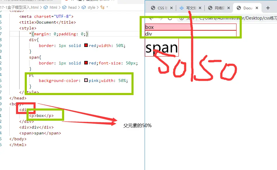 3)width 和 height 也可以设置百分比,是相对于父元素的width 和 height来说的。