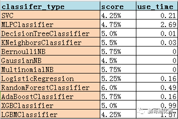 ws.append([classifier,str(round(100*score,2))+'%',use_time])