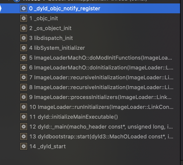 _dyld_objc_notify_register之前还调用了好多函数,回到递归初始化函数recursiveInitialization,notifySingle后面忽视了一个重要函数doInitialization