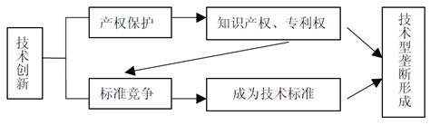 在传统经济中,标准是由标准化机构等公共机构强制推出的公权,标准制定机构在采集标准时一般会尽量避免将具有私有属性的知识产权或专利权纳入到标准之中,具有公权的标准不为某个企业所独占,而是各个同类企业所必须共同遵循的准则。由于这类标准不限制各企业为达到标准而采用的具体技术,谁的技术最高效、最易于实施,谁就能在竞争中胜出,因此这类技术标准的制定和实施促进了企业之间的技术竞争。信息经济中,由于企业的产权保护意识很强,只要有创新就会考虑申请专利,很少有技术标准可以绕开知识产权或技术专利权。技术标准中私有产权的介入意味着标准持有者具有排他性的市场势力,其他企业若要使用这一标准,就得向标准持有者支付相关的知识产权费或技术专利费,技术标准对竞争的负面影响日益暴露,在市场竞争中标准持有者可以凭借技术标准轻易地获得市场优势。