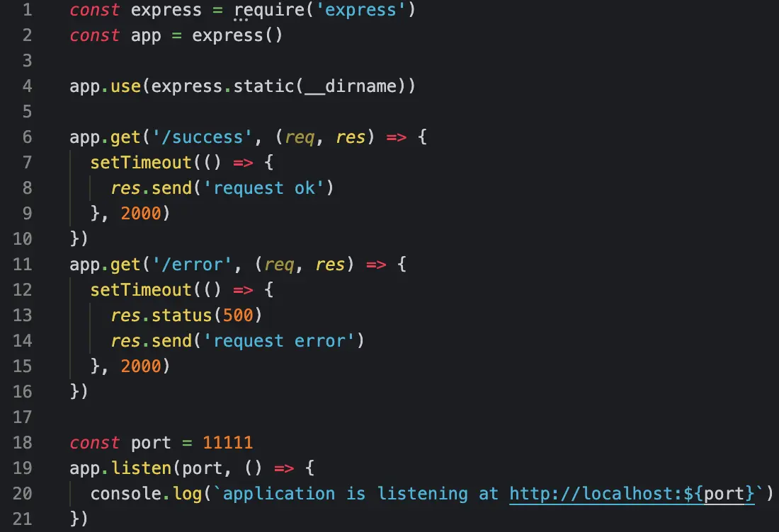 - 服务端用express简单搭建一下,构造一个延时2秒的接口测试并发时的情况