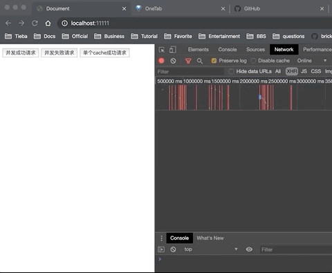 至此,并发的请求只要第一个返回成功了,后边都会马上响应,且真实只发起一个ajax请求。