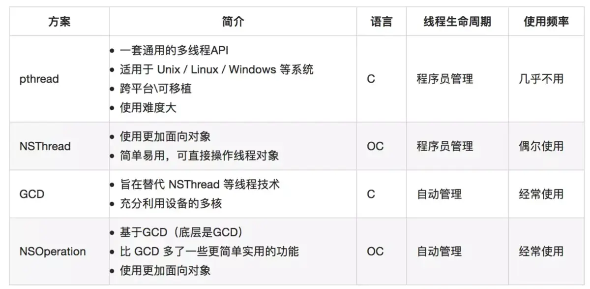 3、NSOperation: iOS2.0的时候就出现了(当时不好用,后来苹果对其进行改造)。