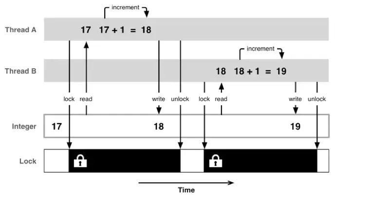 在编程中,引入对象互斥锁的概念,来保证共享数据操作的完整性。每个对象都对应于一个可称为“互斥锁”的标记,这个标记用来保证在任一时刻,只能有一个线程访问对象。