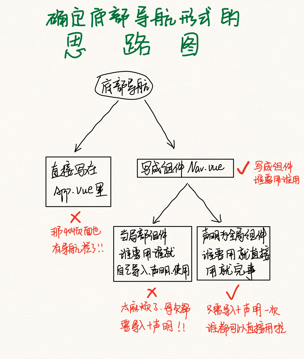 - 那就把导航栏写成一个名叫Nav的组件,哪个页面要用就让他用
