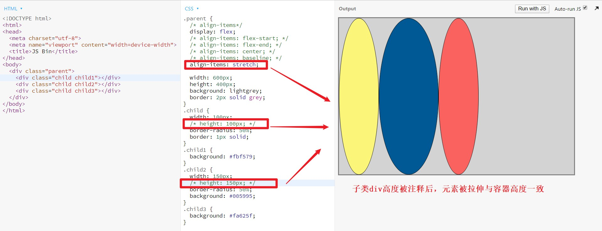 stretch flex子项在侧轴被拉伸到与容器相同高度