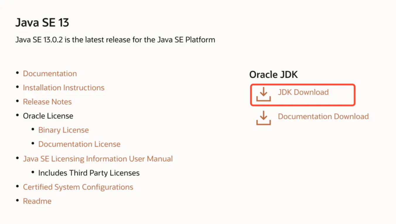 www.oracle.com/java/techno… 在官网选择JDK版本进行下载(例子:Java SE 13)