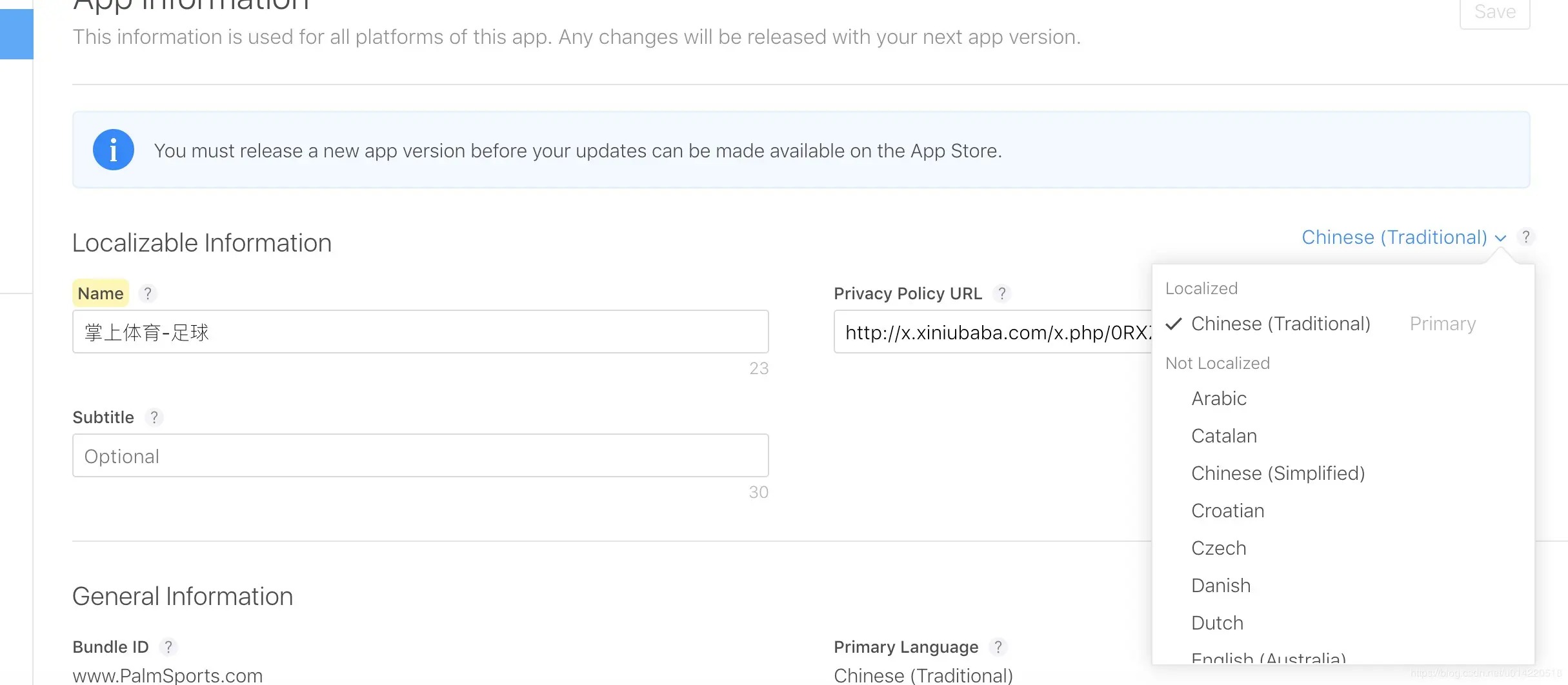 我们在上架多语言的包的时候,需要把关键词和描述翻译成多语言,然后填写进去,如下图: