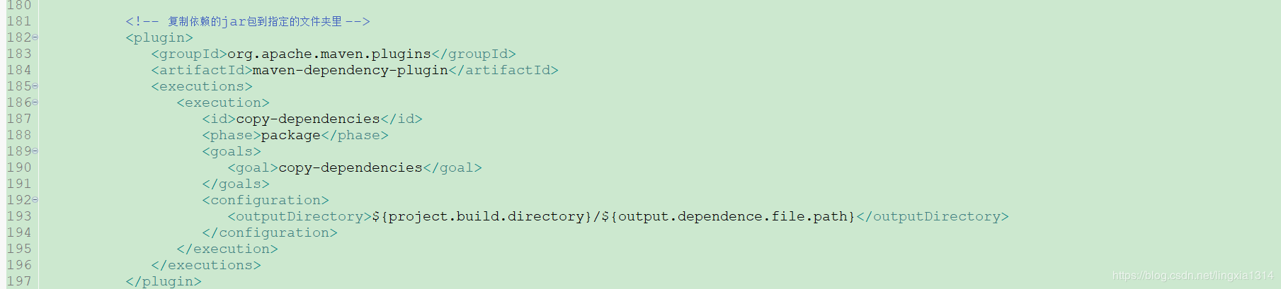 <!-- 复制依赖的jar包到指定的文件夹里 -->