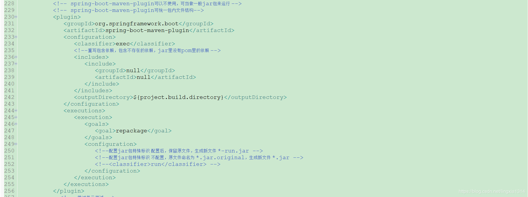 <!--配置jar包特殊标识 配置后,保留原文件,生成新文件 *-run.jar -->