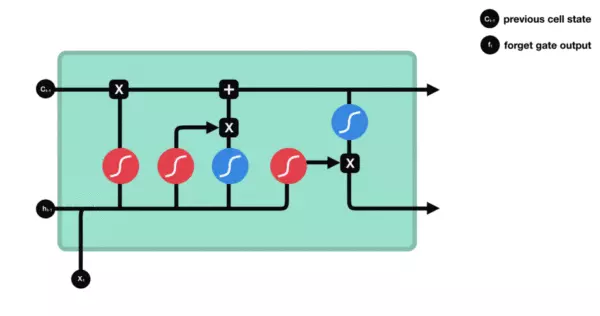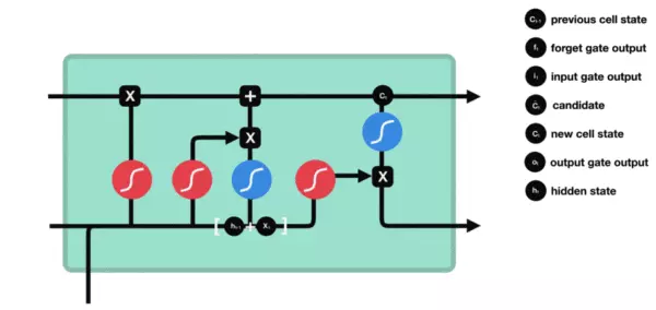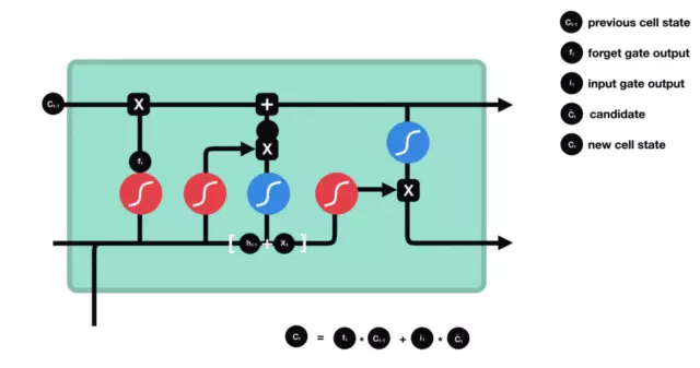 单元状态有点像传送带。它沿着整个链一直走,只有一些微小的线性相互作用。信息很容易在不改变的情况下流动。单元状态如下图所示。