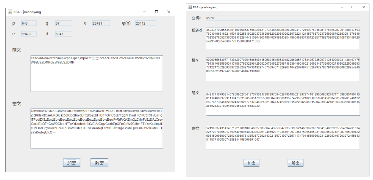 实现了普通 RSA 加解密界面 RSAView 和对大数据进行加解密的界面 RSABigIntegerView ,代码很长不贴了。