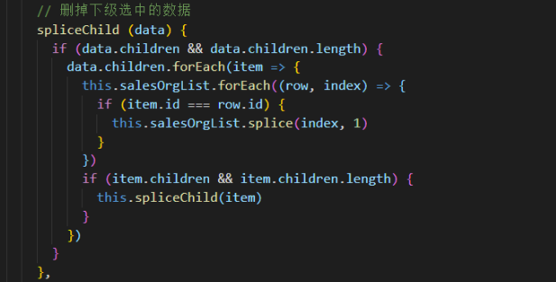 4、父级勾选时删除掉自己勾选过的数据。相当于删掉“池子”里原本属于子级的数据(使用递归查找树形结构数据)。