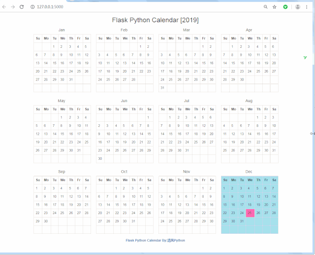 今天通过Flask,制作一个网页版日历,系统启动后,计算当天日期,并生成日历,高亮表示本月和今日。