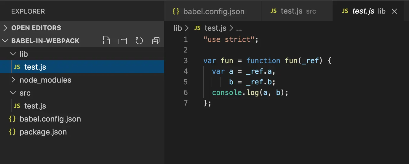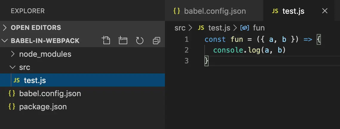 新建文件夹 src,src 内新建文件 test.js,随便写点啥es6语法。