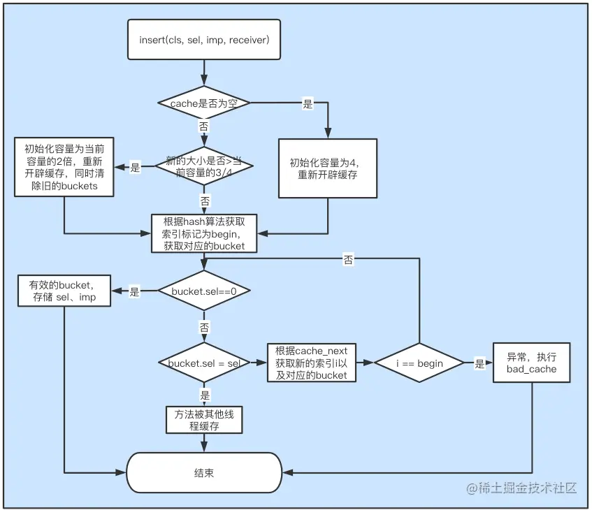 insert是cache_t进行缓存的核心方法。主要操作如下: