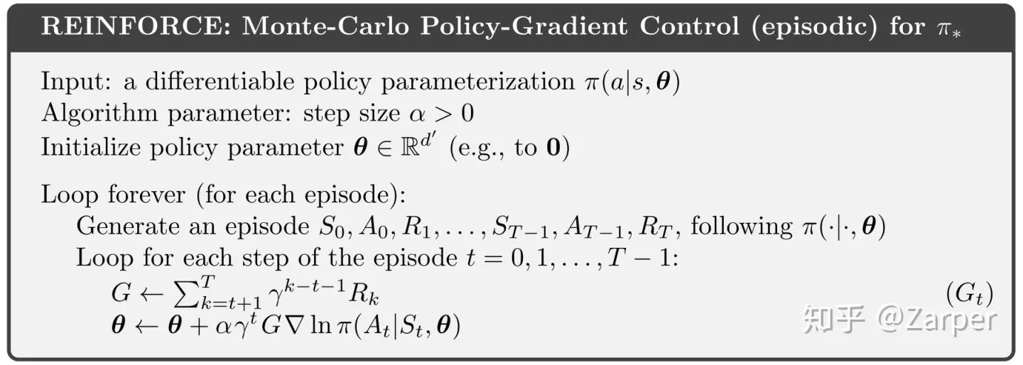 由于 REINFORCE 算法使用了完整的返回值 ,因此属于蒙特卡罗算法,只适用于 episodic 形式。