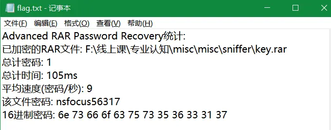 3.使用rar破解工具中的字典破解来破解key.rar的密码,最后将最后结果以flag.txt输出。