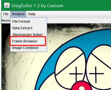 java -jar Stegsolve.jar- 4.用Steslove帧浏览逐帧查看图片,用stegsolve打开gif文件,选择analyse中的frame broswer逐帧浏览图片