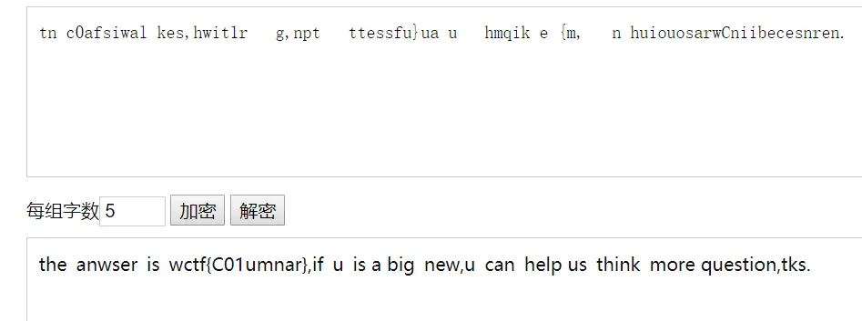 - the anwser is wctf{C01umnar},if u is a big new,u can help us think more question,tks.