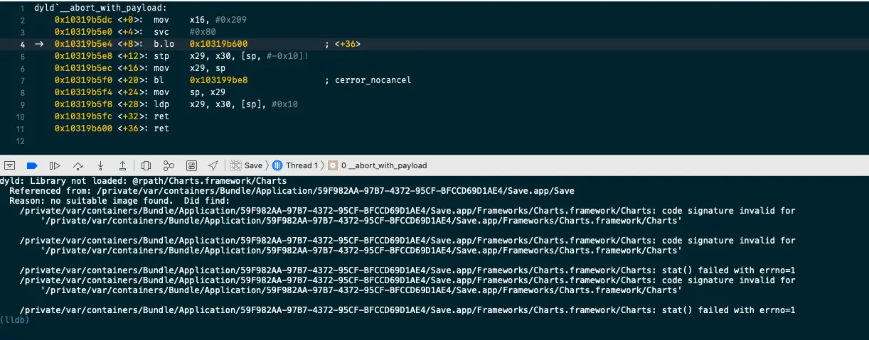 Xcode真机运行crash:dyld: Library not loaded 不靠谱的哈利 2020-03-21 649 阅读1分钟 最近在做一个项目,在手机上跑的没问题,但是某一天突然就不能运行了。一直报这个错 但是奇怪的是模拟器可以正常运行,尝试了很多解决办法,最后发现这应该是iOS13.3的bug,而且没有苹果开发者会员才会出现。 解决办法: 开通苹果开发者会员,重新安装证书和描述文件 或者 等iOS13.4更新,或者找低版本的机子安装运行