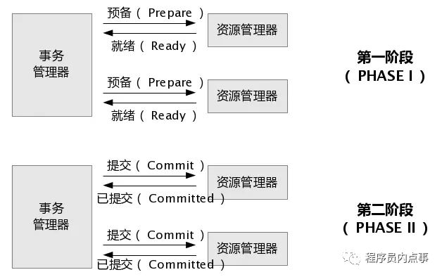 XA协议 是一个基于数据库的分布式事务协议,其分为两部分:事务管理器 和本地资源管理器 。事务管理器 作为一个全局的调度者,负责对各个本地资源管理器统一号令提交 或者回滚 。二阶提交协议(2PC )和三阶提交协议(3PC )就是根据此协议衍生出来而来。如今Oracle 、Mysql 等数据库均已实现了XA接口 。