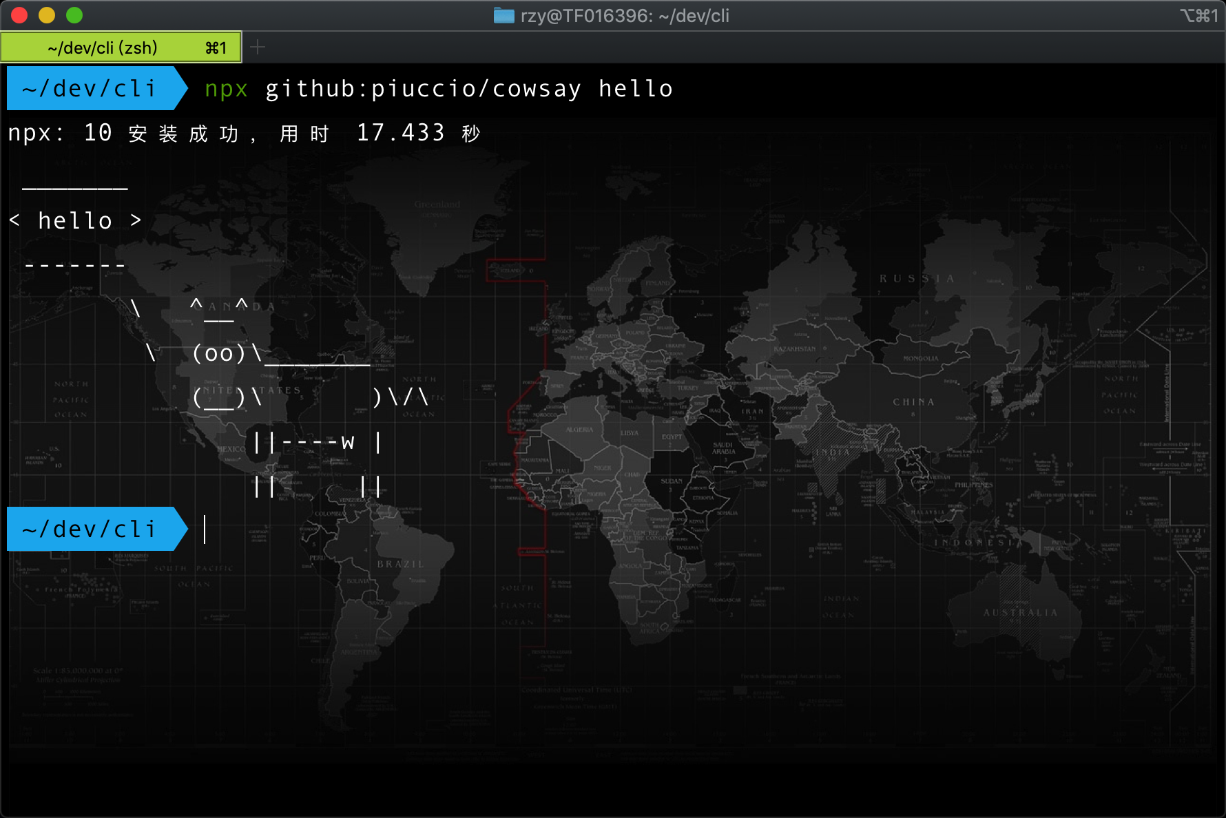 上面代码中,cowsay hello | lolcatjs 执行时会报错,原因是第一项 cowsay 由 npx 解释,而第二项命令 localcatjs 由 Shell 解释,但是 lolcatjs 并没有全局安装,所以报错。