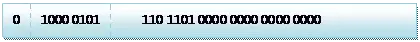 那么如果给出内存中一段数据,并且告诉你是单精度存储的话,你如何知道该数据的十进制数值呢?其实就是对上面的反推过程,比如给出如下内存数据:0100001011101101000000000000,首先我们现将该数据分段,0 10000 0101 110 1101 0000 0000 0000 0000,在内存中的存储就为下图所示: