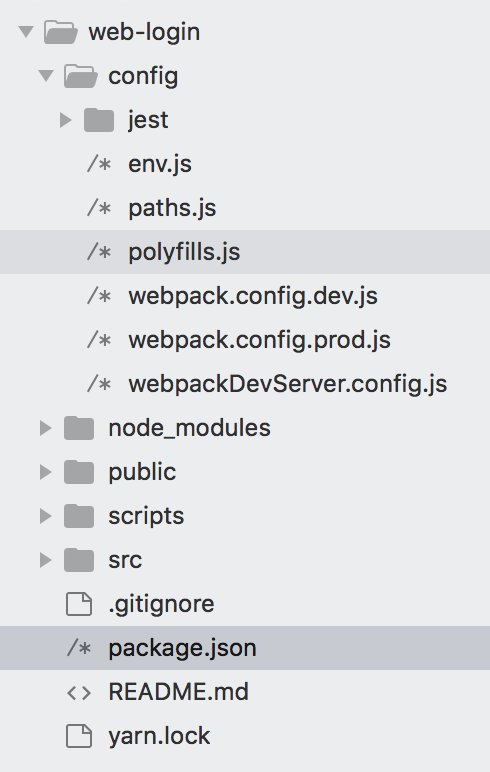 4.首先npm run eject不可逆,执行完他以后,出现成功的提示信息以后,我们进入项目,找一个config的文件夹,所有脚手架的配置文件,都存放在这个文件夹里面。这样我们就成功的把所有配置文件都暴露出来了。