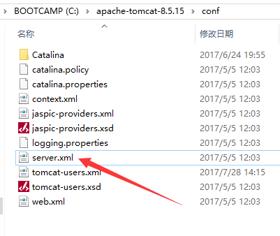 - 在Tomcat的安装目录下,找到conf-->server.xml文件