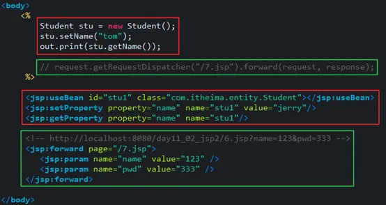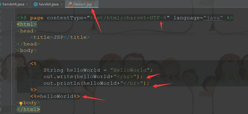- <%……%> java代码片段(常用),用于定义0-N条java语句,方法内写什么就可以在这里写什么,不能声明方法和类;