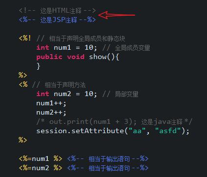 - JSP注释:<%-- 被注释的内容 --%>