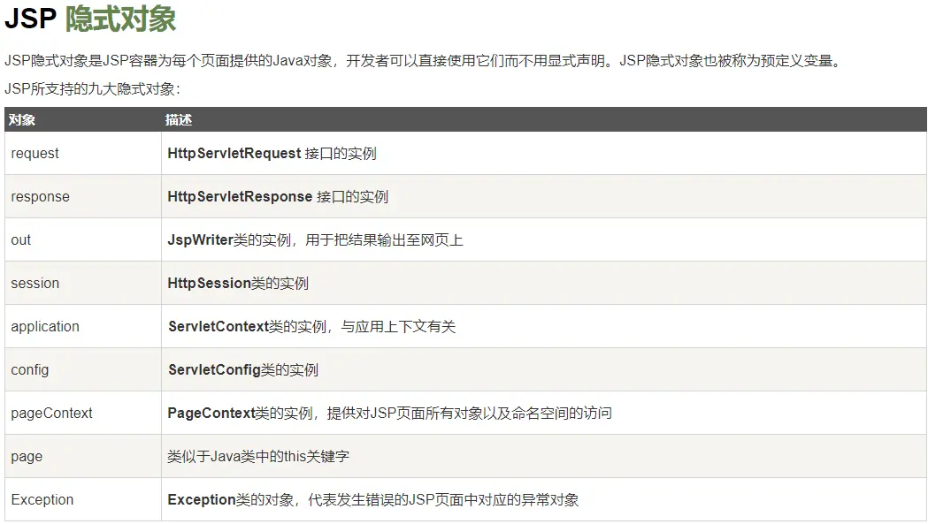 jsp中无需创建即可使用的对象一共有9个,称为九大内置对象。