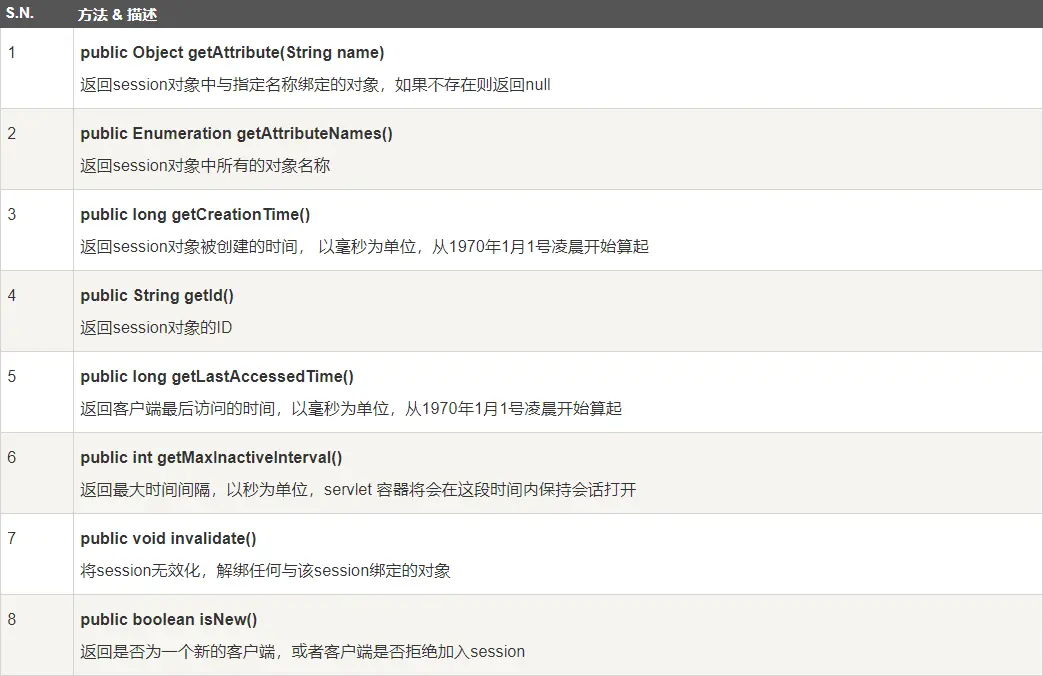 - void invalidate() 让session失效,调用这个方法会让session失效,当session失效后,客户端再次请求,服务器会给客户端一个新的session;